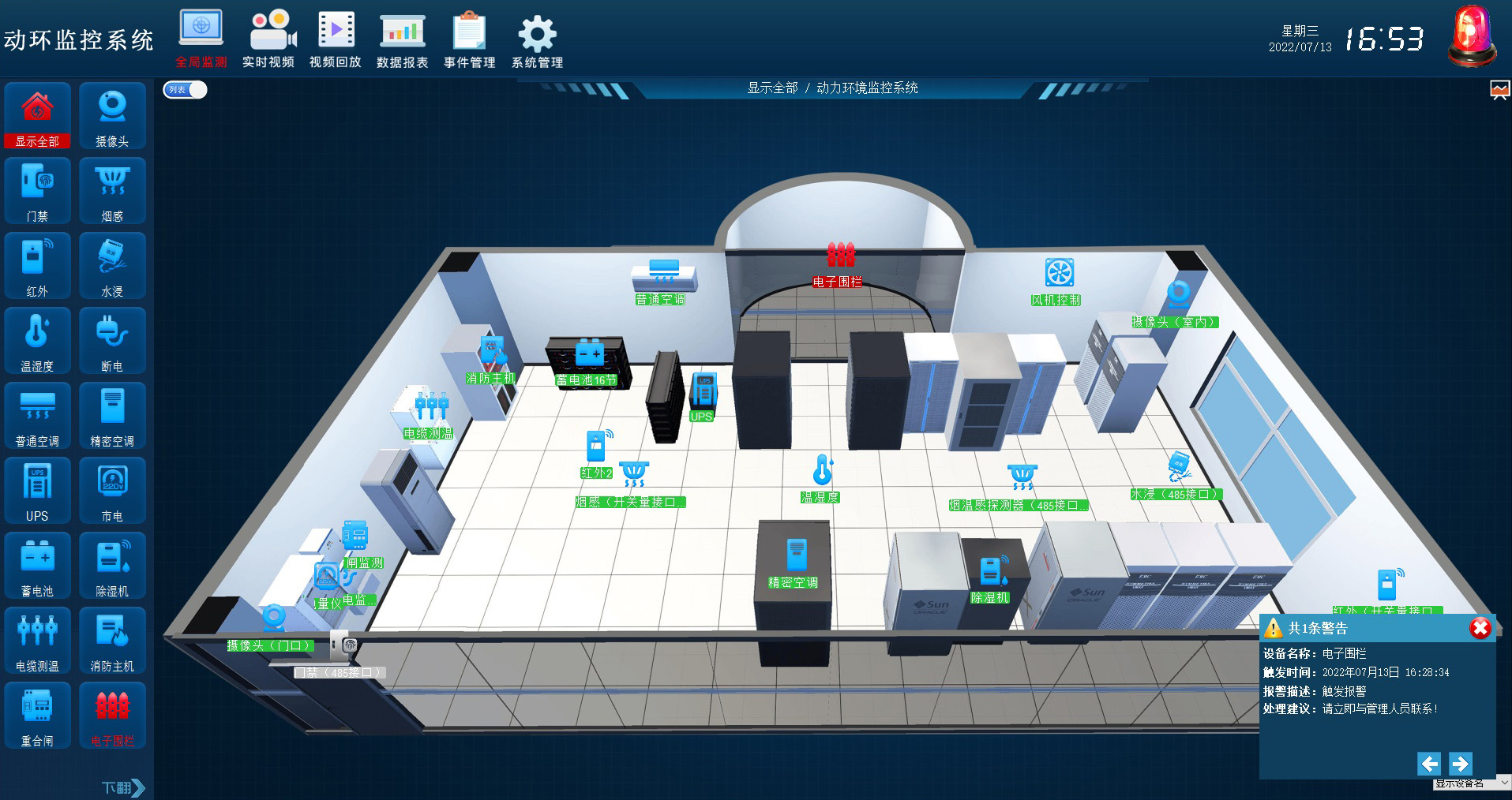 电力智能辅助控制监控系统是专门针对电力行业打造的一体化机柜系统,系统稳定、易用、安全,通过对配电房的环境、运行负载、设备工况等进行实时监测、智能分析,实现主动运维,进一步增强电力基础设施的安全保障能力,提升供电的可靠性。